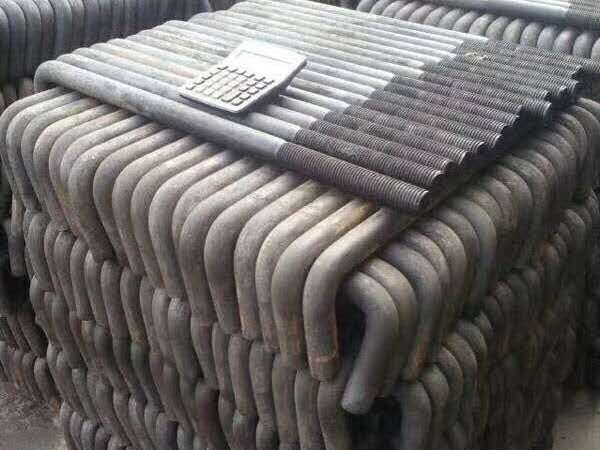 地腳螺栓一般用Q235、Q345,即為光圓的。好像我還沒有見到過用螺紋的情況,不過要是受力需要的話也未嘗不可。螺紋鋼(Q345)強(qiáng)度大,做螺母的絲扣沒有光圓的容易。對(duì)于光圓地腳螺栓而言,埋深一般為其直徑的25倍,然后做一個(gè)120mm左右長(zhǎng)的90度彎鉤。