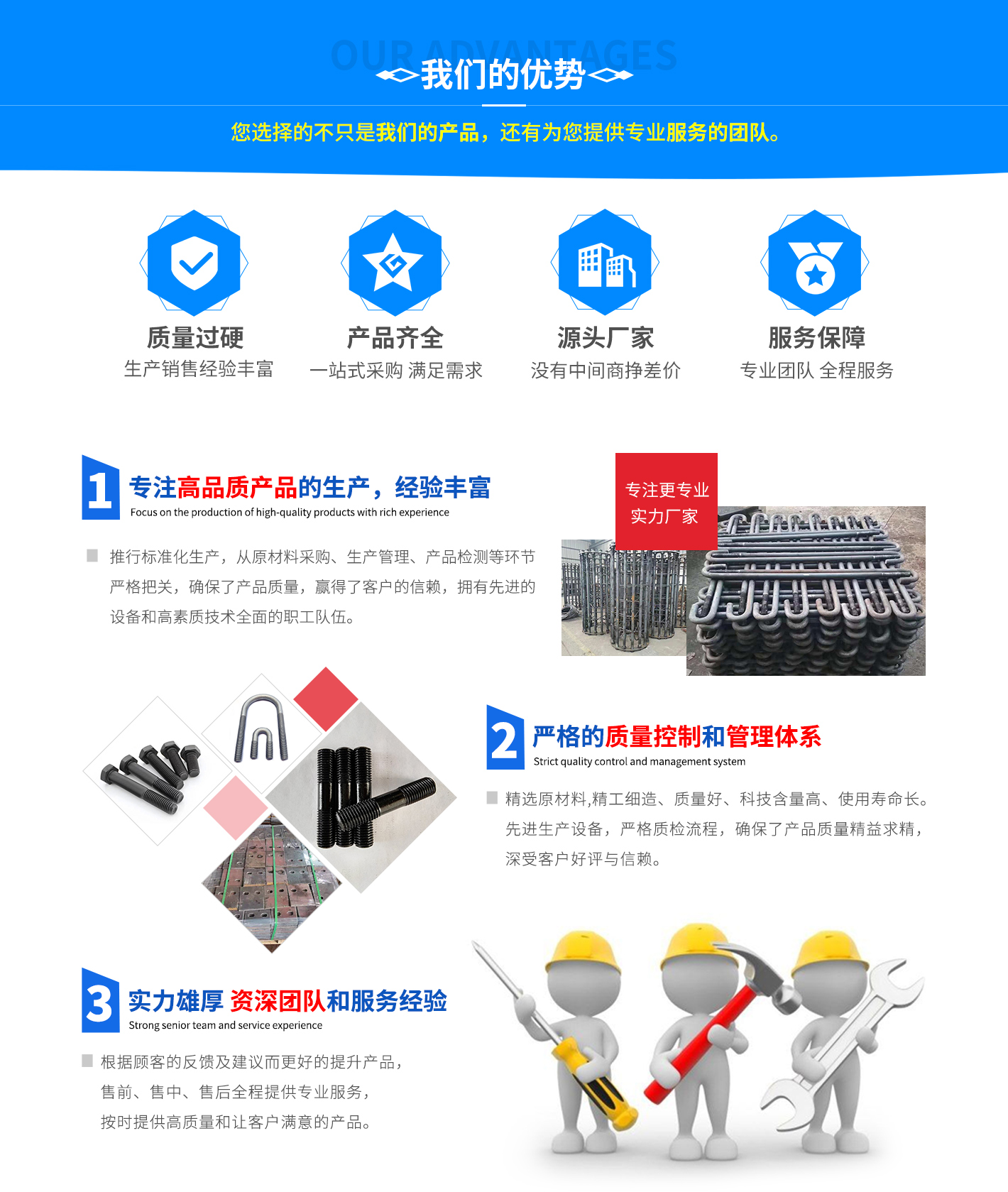 我們擁有緊固件研發(fā)、生產(chǎn)、銷售、服務(wù)于一體的發(fā)展歷程,積累了豐富的緊固件制造經(jīng)驗(yàn),造就了一批從事緊固件設(shè)計(jì)制造的工程技術(shù)人員和經(jīng)驗(yàn)豐富的一線技術(shù)人員。